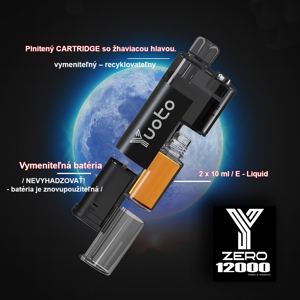 Produkt Y ZERO 12000 je jednorazové zariadenie, čo znamená, že po použití 2x10 ml liquidu sa môže vyhodiť.